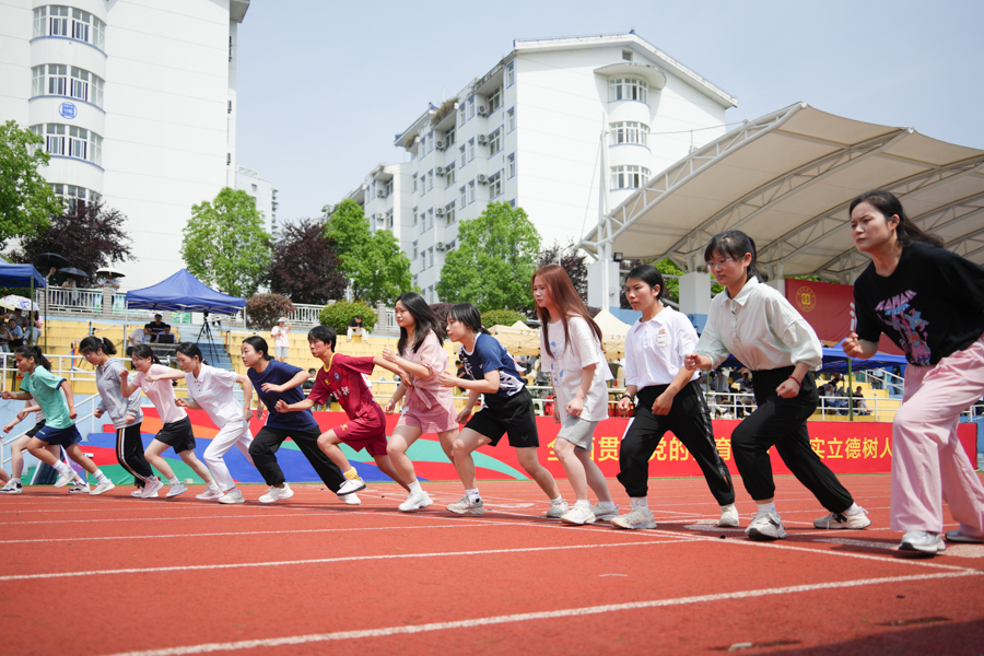各就各位!一声令下,疾跑如风。男、女子赛跑如火如荼地进行中。裁判员枪声一发,运动健儿们矫健的身姿成为了跑道上一道亮丽的风景线。