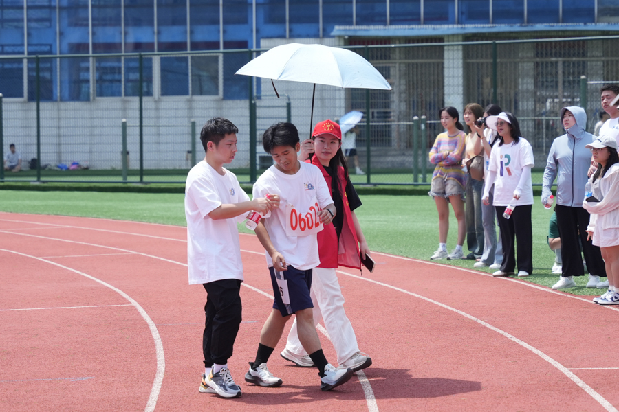 赛场内外,有一群洋溢着活力的志愿者。他们驻守在操场的各个角落,奔走在运动场之间,为运动员保驾护航,陪跑、递水、赛后搀扶,志愿者与运动员的双向付出,让人倍感温馨,他们都是这运动场上最美的荣光。