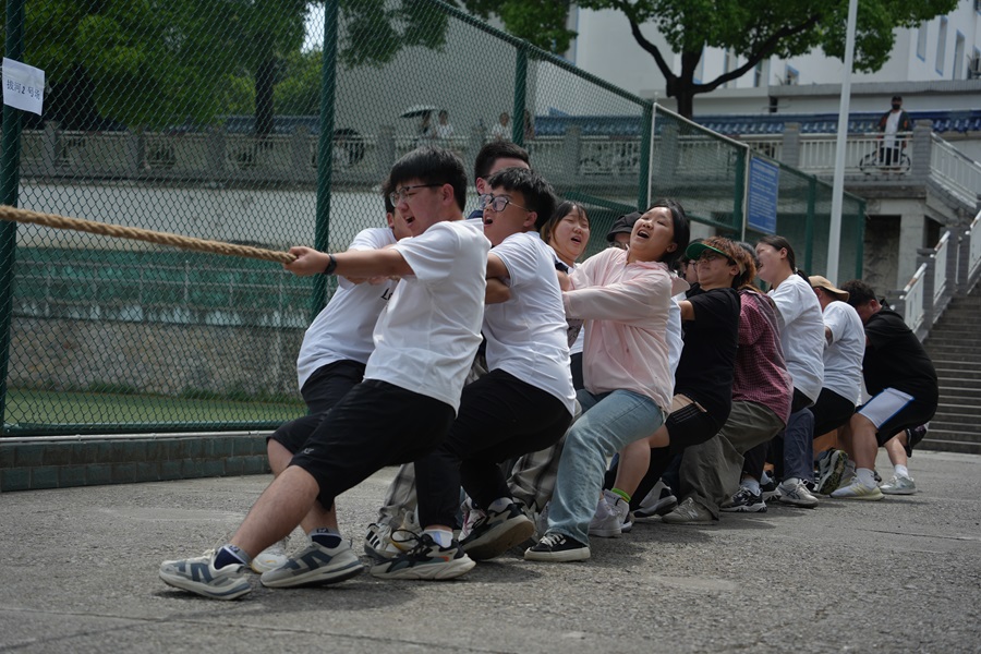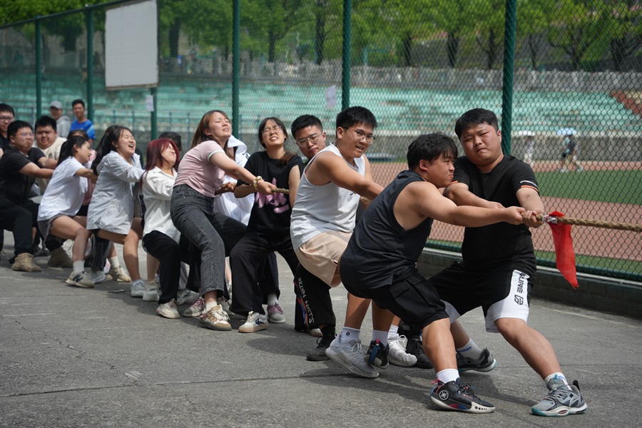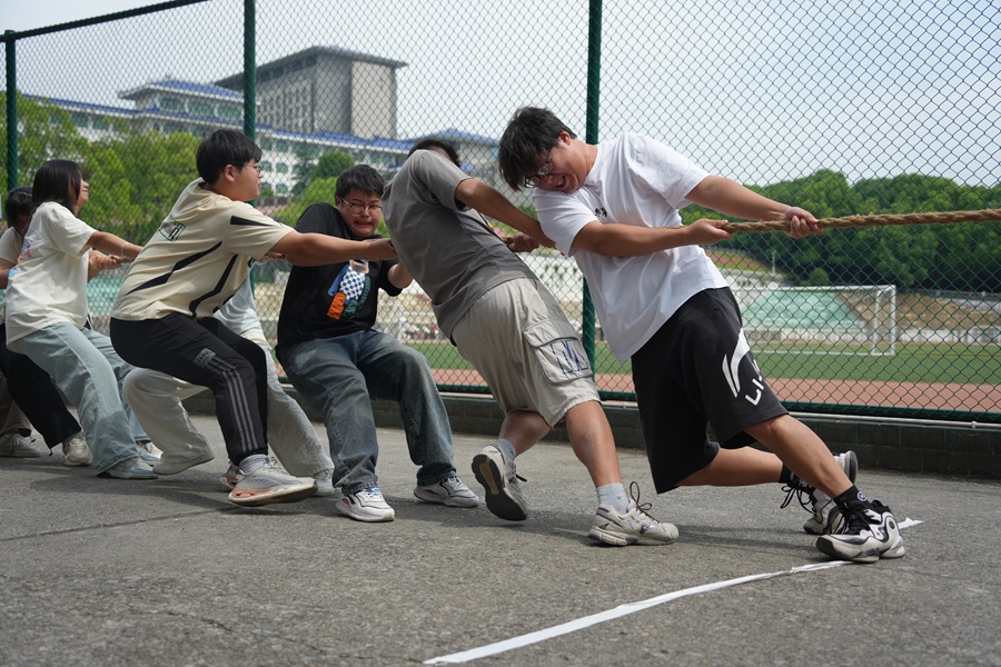 运动员们眼神坚如石,步伐稳如山,牢牢拉着麻绳,屏气凝神,重心放低,奋力往后拉。一根绳,连接着智慧和力量;一群人,演绎着团结与拼搏。