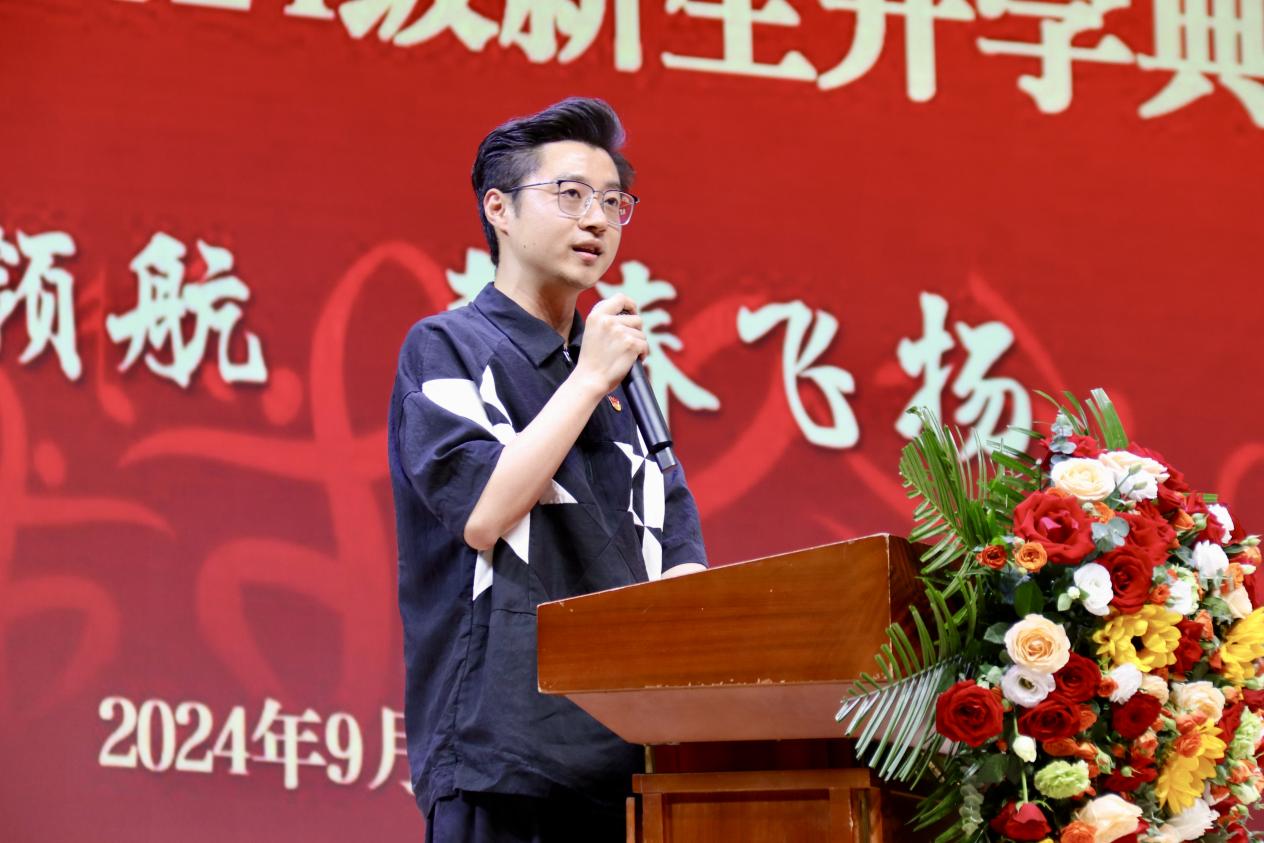谷秋阳致辞。他代表全院师生向2024级新生表示热烈欢迎和诚挚祝福。他指出,大学阶段是青年人生观、价值观、世界观形成的重要时期,希望同学们坚定信念,追求卓越;培养综合素质,注意学科融合;践行团队合作和担当精神,在实现中华民族伟大复兴的路上树立远大理想和团队合作意识,敢于挑战,勇于创新,有所作为,无愧于青春,无愧于时代,无愧于未来。