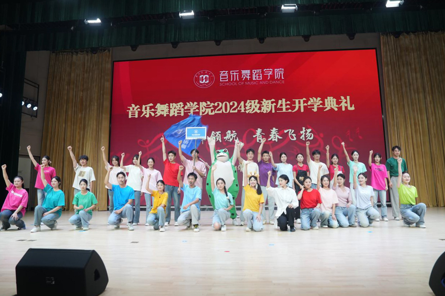 9月26日,音乐舞蹈学院在新区多功能厅举行“音舞领航,青春飞扬”2024级新生开学典礼。音乐舞蹈学院党总支书记张蕊、院长谷秋阳、副院长焦娜、党总支副书记邓丽、副院长王松,学院各科室、各系部中心负责人,优秀校友代表周洲,全体教师及全体2024级新生参加典礼。
