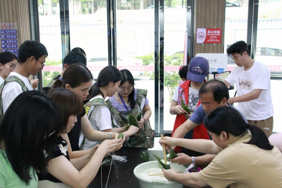 5月21日,文学与传媒学院联合桂花园社区举办以“粽香传情,同心筑梦”为主题的非遗文化进社区活动。