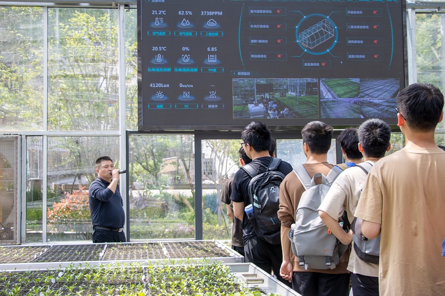 黄勇带领学生们参观基地实践