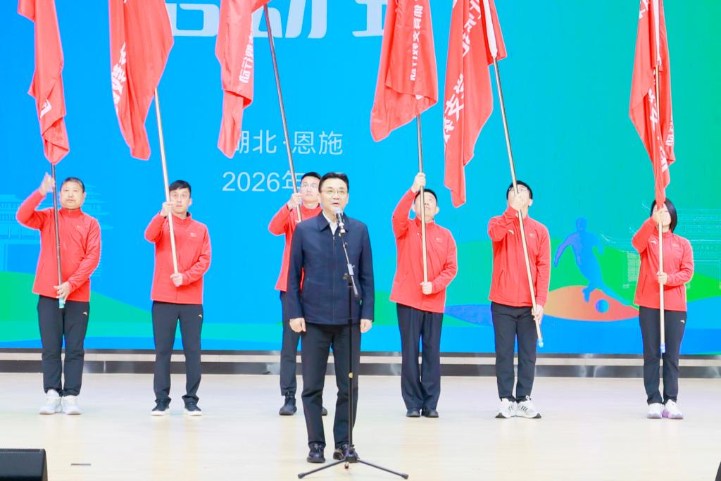 3月31日,2026年体育支教志愿服务工作调研暨湖北省“千师百校”体育支教行动启动式在bat365在线中国登录入口举行。湖北省体育局党组书记、局长水兵宣布湖北省体育支教行动正式启动。国家体育总局青少司司长李辉,湖北省体育局党组成员、副局长骆启义共同为11支高校体育支教团授旗,标志着2026年体育支教工作全面铺开。