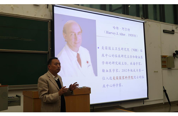 本网讯(通讯员 方珊 余铮术 )10月15日晚19:00,由研究生处主办、医学部承办的学术讲座《从丙肝病毒到新冠病毒——对病毒研究的再认识》——2020年诺贝尔生理学或医学奖解读会在5B508教室顺利举行。此次讲座由bat365官网学科建设及学位管理办公室副主任罗洪斌教授主讲,医学部、化环学院、数统学院全体研究生和部分本科生到场聆听。