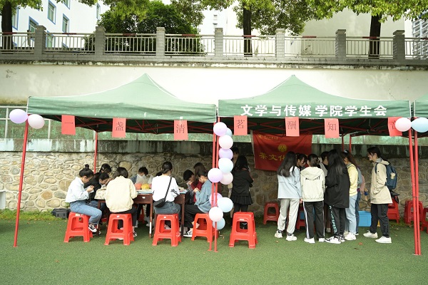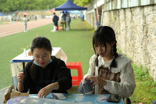 活动分为茶艺表演和游戏环节两部分,现场设置展棚若干。茶艺表演环节,表演者身着汉服,静心凝气,洗盏盛水倒茶,过程行云流水一气呵成优雅的洗茶具技术和精湛的茶艺表演引得观众连连称赞游戏环节分为DIY香包”“猜茶谜”“贴心愿贴三个部分完成游戏即可参与集章抽奖活动。“DIY香包”环节,参与者充分发挥想象力,用精美的布料和香料制作专属香包“猜茶谜”环节,参与者时而冥思苦想,时而对答如流,在充分考验基础茶艺知识同时也激发学生对茶文化的兴趣“贴心愿贴”环节,参与者在色彩绚丽的心愿纸上写下心愿贴在棚中,真切传自身对未来的美好希冀与展望。
