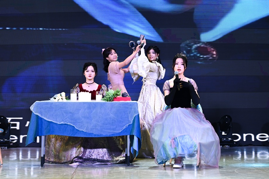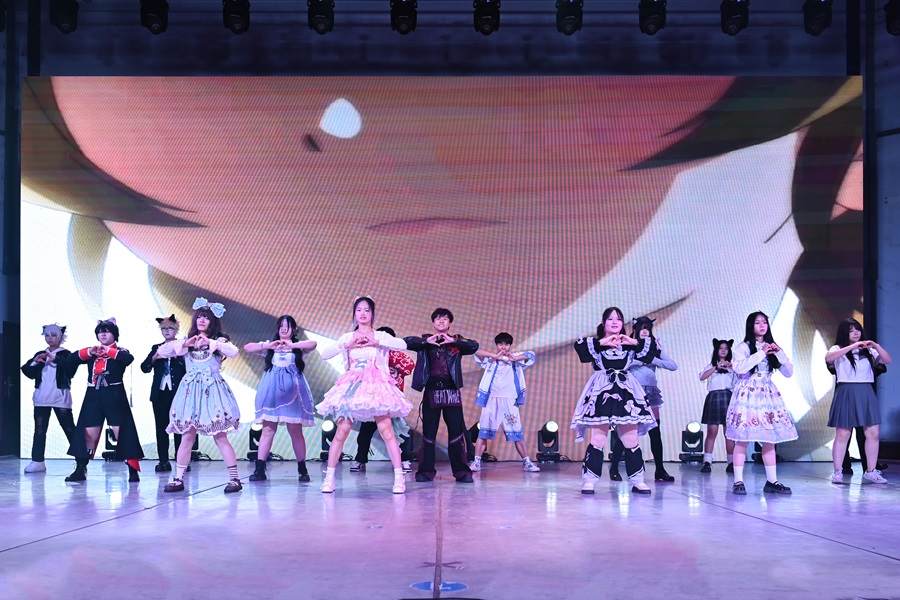 DXE动漫社带来舞蹈《爱的魔法》,舞者们身着色彩绚丽的动漫风服饰,随着欢快的音乐节奏舞动,动作整齐,令人赏心悦目。茶文化协会、兰亭书苑和非物质文化遗产研习学社联合带来表演《茶笺墨舞华服赏》,通过情景演绎和讲解茶道、传统服饰、书法的文化背景丰富观众对民族文化的了解,弘扬了中华优秀传统文化。
