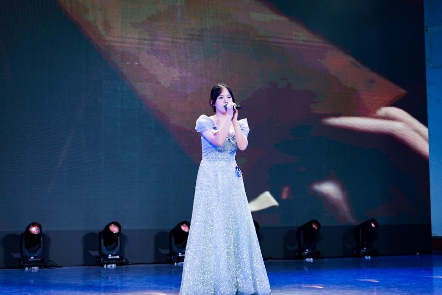 大赛在合唱《我爱你中国》中拉开序幕,在缓缓响起的旋律中,十位选手用饱满的热情和真挚的情感,用歌声诉说着对祖国的无限热爱和祝福。一号选手钟欣怡带来《星辰大海》,选手的声音清澈而富有穿透力,歌声时而低沉婉转,时而高亢激昂,让观众久久难以忘怀。六号选手宋怡萱带来《我的美丽》,声音温柔而富有磁性,优美的转音萦绕耳畔、穿透心灵,引起现场观众共鸣。九号选手苏杭以其深情而富有感染力的独唱《无名的人》一举夺魁,歌曲旋律悠扬美妙,选手嗓音卓越独特,沉着稳健的台风和精湛绝伦的演唱技巧为其增添光彩,展现出选手演唱功力。