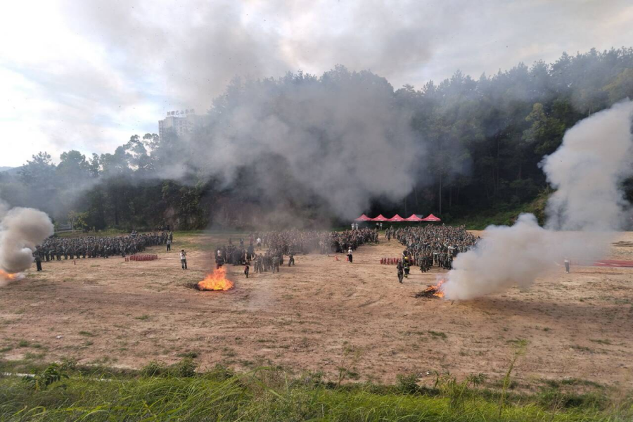 本次活动分为柴堆灭火操作演练、帐篷模拟逃生、水带连接三个环节,按照一至四营的顺序开始消防安全演练。