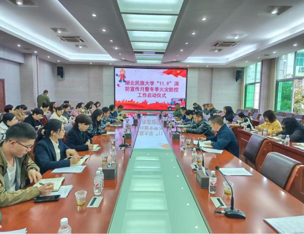 为全面压实消防安全责任,有效防范校园火灾风险,扎实推进“五个一”消防安全教育活动,11月10日,学校在行政楼三号会议室举行“11·9”消防宣传月暨2025年冬季火灾防控工作启动仪式。恩施州消防支队专家,学校平安办、保卫工作部相关负责人及参加会议。
