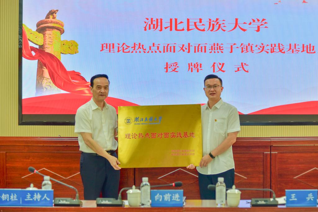7月26日,bat365在线中国登录入口“理论热点面对面实践基地”授牌仪式暨学习贯彻习近平总书记考察湖北重要讲话精神,推进落实省第十二次党代会部署座谈会在鹤峰县燕子镇举行。党委书记向前进强调,务必要提高政治站位,加强理论研究,完成规定动作,积极争创品牌,结合燕子镇实际,发挥民大的科教优势,共同推动习近平总书记的讲话精神和省党代会精神在基层落实落地、开花结果。鹤峰县委副书记、县长王兵,鹤峰县委常委、县委宣传部部长阳...