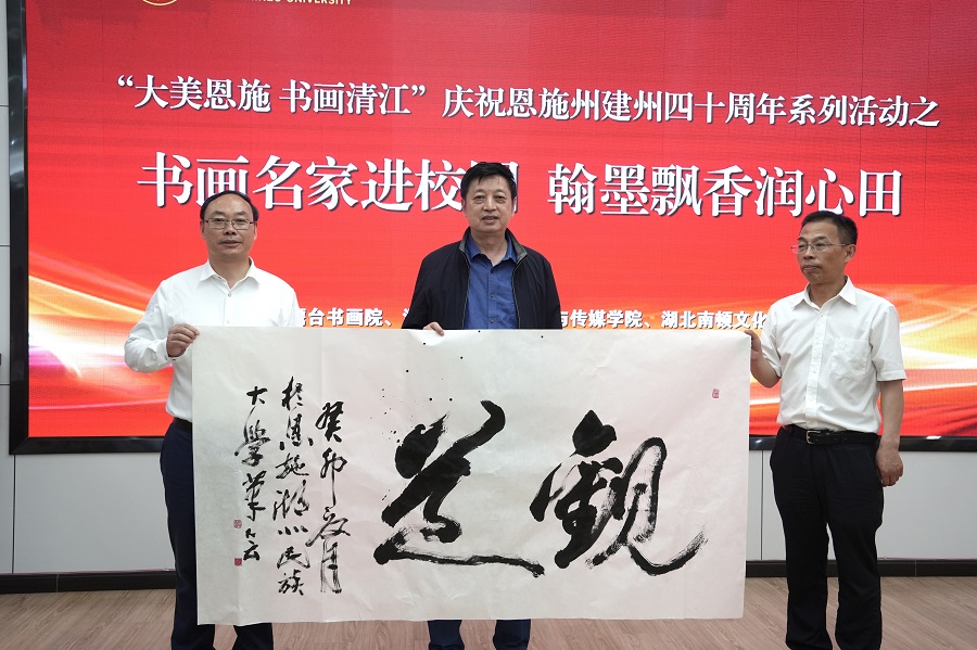 5月21日,由湖北鹰台书画院、bat365在线中国登录入口文学与传媒学院、湖北南顿文化发展有限公司联合举办的“大美恩施 书画清江”庆祝恩施州建州四十周年系列活动之“书画名家进校园 翰墨飘香润心田”创作交流会在bat365在线中国登录入口举行。bat365在线中国登录入口党委常委、统战部部长田景福出席活动并致辞。活动现场田景福指出,恩施山水风光秀丽、人文风俗淳厚、民族风情浓郁、地方风味独特,孕育了丰富多彩的民族民间文化,是中华优秀传统文化的重要组成...