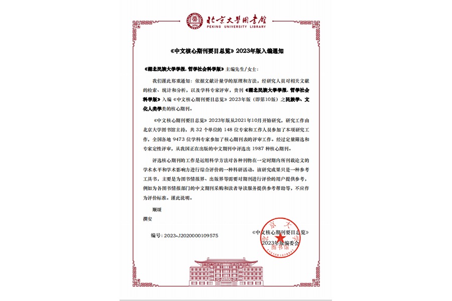近日,第10版《中文核心期刊要目总览》正式发布,《bat365在线中国登录入口学报(哲学社会科学版)》入编《中文核心期刊要目总览》2023年版,继续入列民族学、文化人类学类的核心期刊方阵。据悉,《中文核心期刊要目总览》2023年版从2021年10月开始研究,研究工作由北京大学图书馆主持,32个单位的总计148位专家和工作人员参加了本项研究工作,全国各地9473位学科专家参加了核心期刊的评审工作。经过定量筛选和专家定性评审,从我国在版的...