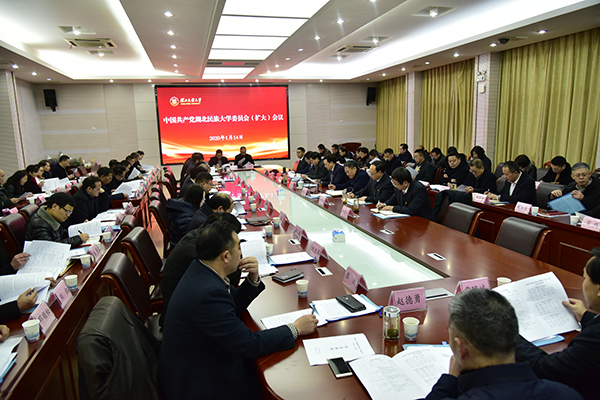 吴建清作报告 会议现场 本网讯1月14日,bat365官网在行政楼3号会议室召开中国共产党bat365在线中国登录入口委员会(扩大)会议,会议总结了2019年的工作,对2020年工作进行了部署,听取和审议了党委书记吴建清同志代表党委常委会作的《牢记初心使命,提升治理效能,奋力谱写bat365在线中国登录入口高质量发展新篇章》报告,并审议通过了该报告。纪委委员、校属各单位党政负责同志列席会议。会议由吴建清主持。 会议充分肯定学校党委常委会201...