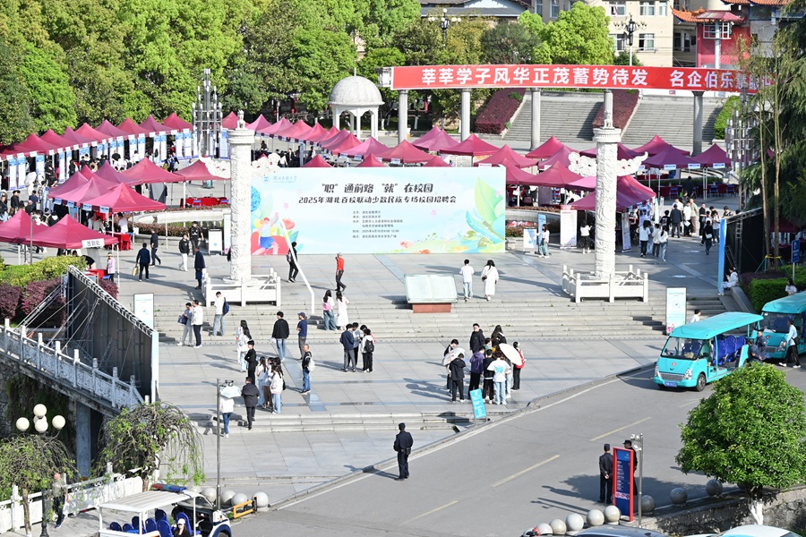 4月10日, 2025年湖北百校联动少数民族专场校园招聘会在bat365在线中国登录入口大学生广场举行。 招聘会现场 校长顿祖义深入招聘会现场指导工作,与来校招聘企业代表交流人才需求等情况。他要求相关部门和学院按照数量充足、供需匹配要求,高频次、多形式组织不同规模的校园招聘会,有效扩大优质岗位供给,同时,建立健全招聘会“备会”机制,做好会前动员、会中指导、会后跟踪,增强校园招聘实效性。党委常委、副校长李军到场指导工作。...