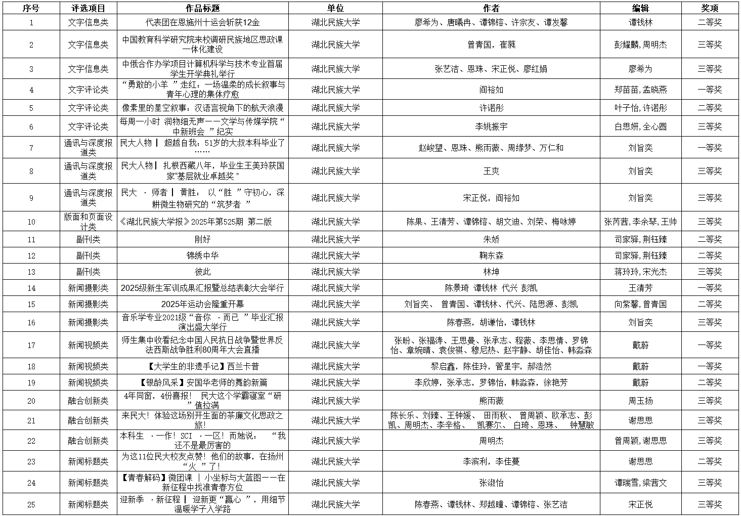 bat365在线中国登录入口25件作品获2025年度湖北高校新闻奖