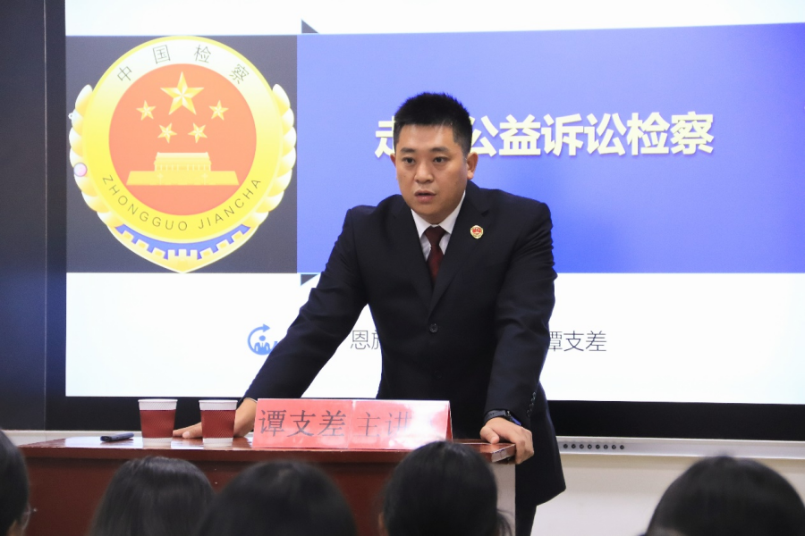 10月20日,以“走进公益诉讼检察”为主题的第十五期校友·德法讲坛于法学院9B305教室举行,由恩施州人民检察院公益诉讼检察部主任谭支差主讲,法学院党总支副书记黄晓波主持,法学院2024级本科生参加。谭支差开展讲座讲座现场谭支差从公益诉讼检察的发展历程、核心要点以及恩施州如何切实落实公益诉讼检察制度三个层面引入主题。谭支差表示,保护公共利益是公益诉讼检察的主要理念,诉前实现维护公益目的是最佳的司法状态,应力...
