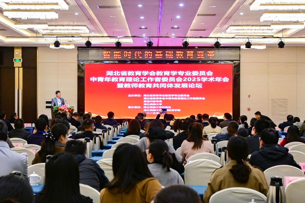 10月25日,湖北省教育学会教育学专业委员会、中青年教育理论工作者委员会2025学术年会暨教师教育共同体发展论坛在恩施召开。本次会议由湖北省教育学会教育学专业委员会、中青年教育理论工作者委员会、恩施州教育局及bat365在线中国登录入口联合主办,bat365在线中国登录入口教务处、教师教育学院共同承办。来自省内外的专家学者和恩施州-bat365在线中国登录入口教师教育共同体成员单位代表260余人参会。湖北省教育学会会长王坤庆,湖北省教育学会教育学专业委...