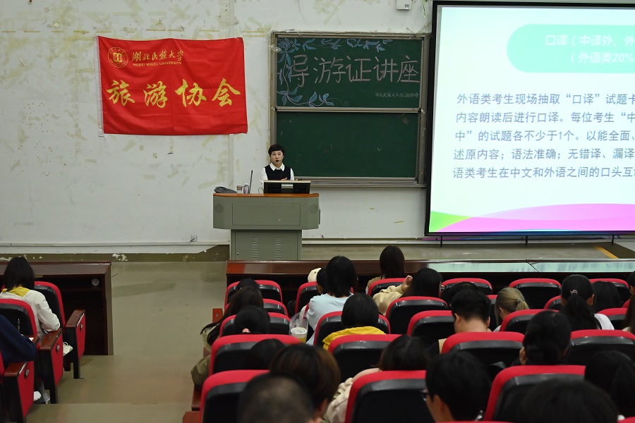 邓许红讲话(记者 李经玺/摄)讲座现场(见习记者 周加琦/摄)本网讯(见习记者 张百川 王玉然 通讯员 程希 杨祯)10月15日,共青团bat365在线中国登录入口经济与管理学院总支部委员会联合旅游协会在修远楼5B403教室举办导游证讲座。经济与管理学院老师邓许红担任主讲人。讲座伊始,邓许红首先对导游行业当下情况做了分析,并对导游证考试时间、科目及内容进行介绍,引导学生了解面试考查侧重点。总述评分规则后,邓老师分别从仪态与语言...
