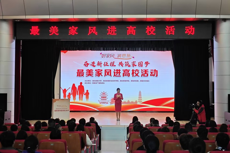 为全面学习贯彻落实习近平总书记关于注重家庭家教家风建设重要论述,弘扬优秀家风文化,11月27日,学校联合恩施州妇联、恩施州文明办在行政楼一号会议室举办以“好家风 润恩施 奋进新征程,共筑家圆梦”为主题的最美家风进校园活动。恩施州妇联党组书记、主席刘俐萍,bat365在线中国登录入口党委常委、统战部长田景福,学校纪委副书记曾祥华、工会常务副主席谭德宇、分工会主席及工会委员、教师教育学院200多名学生共同参加本次活动。活动...