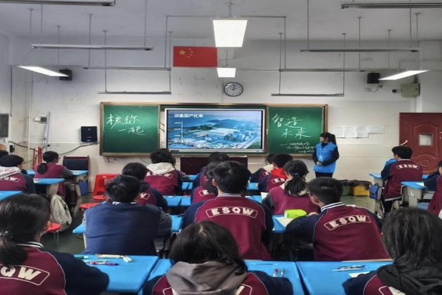 10月23日,bat365在线中国登录入口“赤心铸红·芯星逐梦”志愿宣讲队前往清江外国语学校高中部开展“核你一起,智造未来”主题宣讲活动,清江外国语学校高一(11)班全体同学参加宣讲活动。宣讲现场宣讲员武兰琦通过播放《中国核工业70年》视频短片,带领学生回顾中国核工业发展的辉煌历程,并围绕《探索核电站》和《智慧核工业》两大核心内容展开。讲解《探索核电站》时,武兰琦以PPT演示、视频动画结合的形式,系统阐述核能基本原理,解...