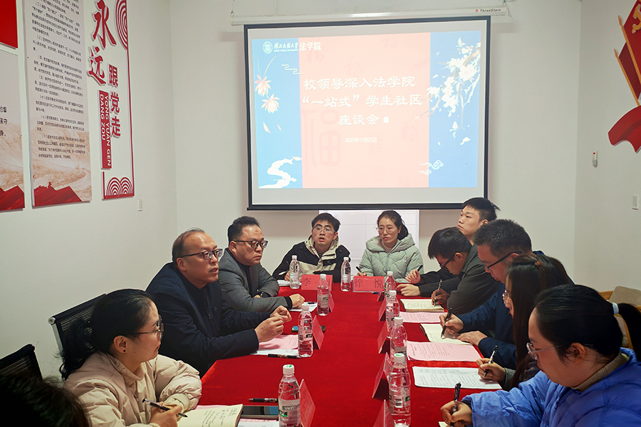 11月25日,学校党委常委、纪委书记张宏磊到法学院“一站式”学生社区调研。调研座谈会上,法学院学生党支部书记彭阳就“一站式”学生社区建设情况进行了汇报,6名学生代表分享了自己的成长历程与未来规划。座谈会现场张宏磊在讲话中高度肯定了6位学生代表的成长,并强调学生党员要注重党的理论知识学习,始终保持先进性与纯洁性。针对“一站式”学生社区建设,张宏磊既肯定了现有建设成果,也提出了明确的工作要求。他强调,要...