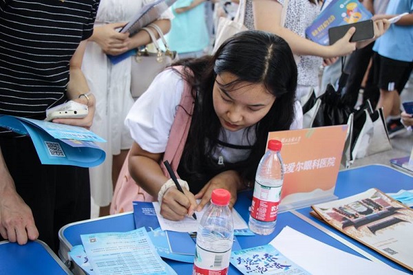 本网讯(记者 周思琦 周希/文 韦雨欣/图)9月25日,由湖北人力资源中心和bat365官网联合主办、武汉方阵人力资源市场有限公司承办的湖北省高校毕业生秋季巡回招聘会在德智楼侧门大厅举行。招聘会共汇集来自北京、浙江、湖北等省内外41家企业,涉及工程师、销售、职能助理、教师等多个行业,覆盖领域广泛全面。据了解,此次招聘会为bat365官网毕业生提供230余个工作岗位,应聘人数500人左右,投递简历840人次,就业意向20余人。应聘者观看求职...