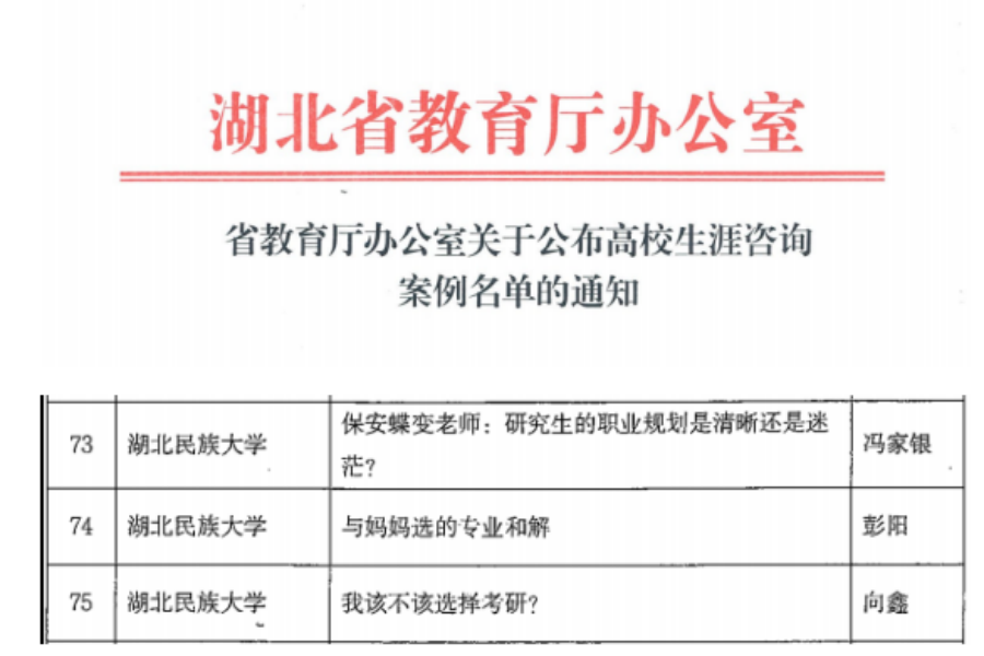 bat365在线中国登录入口3个案例成功入选湖北省高校生涯咨询案例
