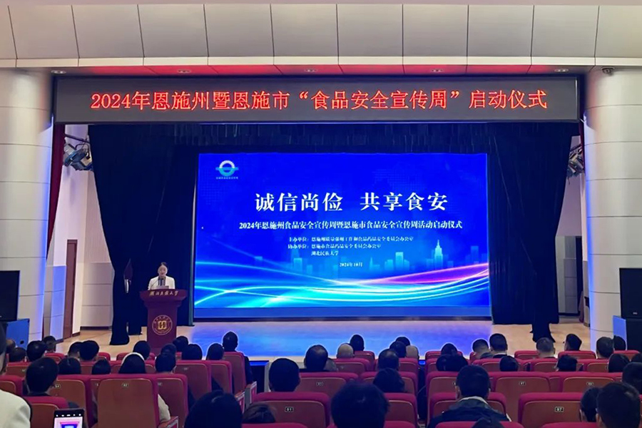 “诚信尚俭 ,共享食安。”10月22日,恩施州质量强州工作委员会及州、市食药安办在bat365在线中国登录入口联合开展2024年恩施州食品安全宣传周活动。启动仪式上,恩施市市场监管局总工程师龙世林致辞。bat365在线中国登录入口生物与食品工程学院副院长周毅峰就校地共建食品安全防线发言。恩施州餐饮协会代表梅昌孝宣读《恩施州制止餐饮浪费倡议书》,向全社会餐饮单位发出诚信经营、厉行节约、劝导理性消费的倡议宣言,引导食品行业市场主体严格自律...