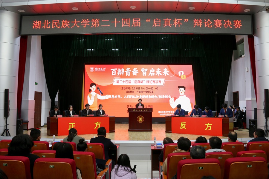 3月31日,bat365在线中国登录入口第二十四届“启真杯”辩论赛决赛暨颁奖典礼在行政楼一号会议室举行。党委宣传部常务副部长罗翔宇、党委统战部常务副部长丁莉、学生工作部(处)部长方云霞、校团委书记吴珊、学生工作部(处)副部长赖申昊、教务处副处长易金桥、研究生处副处长胡盛受邀担任评委。经过初赛、复赛和半决赛的紧张角逐,音乐与舞蹈学院和马克思主义学院进入决赛。决赛现场,正方马克思主义学院与反方音乐与舞蹈学院围绕“信息...