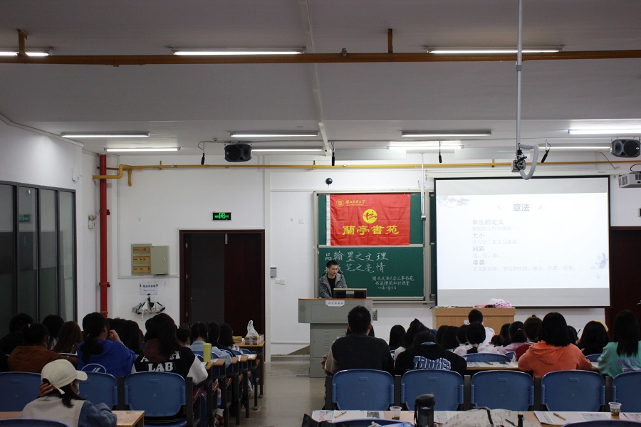 本网讯(记者 周思琦 谭蕊 周希)10月16日,兰亭书苑在修远楼5A206教室举办以“品翰墨之文理,挥纸笔之豪情”为主题的常规活动。清华美院国画系硕士田超担任主讲人。该社团副社长谢慧敏担任主持人。田超作书画常识赏析。他围绕书法常识、国画常识、书画合一和书画赏析四个方面作书法理论知识讲解。在书法常识方面,他结合具体汉字实例作汉字结构章法分析,并强调汉字主笔和比例的重要性。在国画常识方面,田超结合自己的国画作...