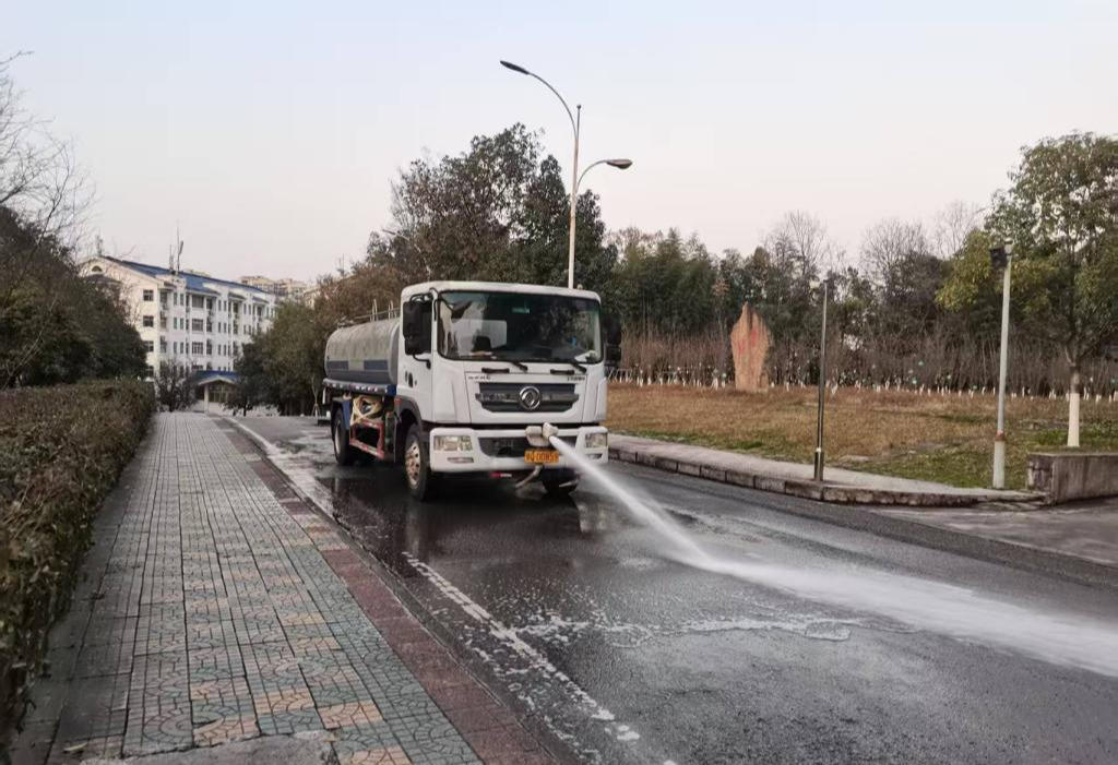 此次行动针对重点区域,彻底清扫了校园主干道路,冲洗大学生广场等公共空间,并完成化粪池等设施的专项清疏,有效提升了校园环境卫生水平与设施安全。焕然一新的校园面貌,既展现了精细化管理的实效,更增添了温馨浓郁的新春气息。