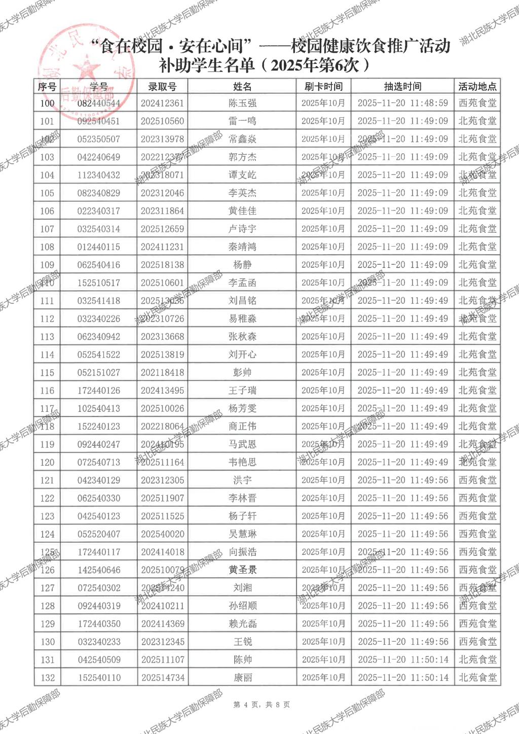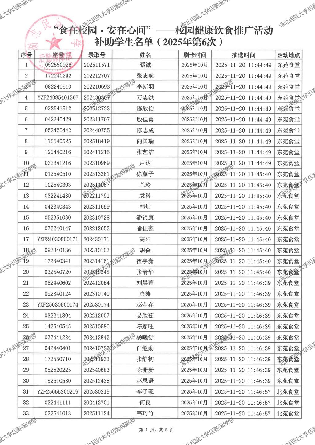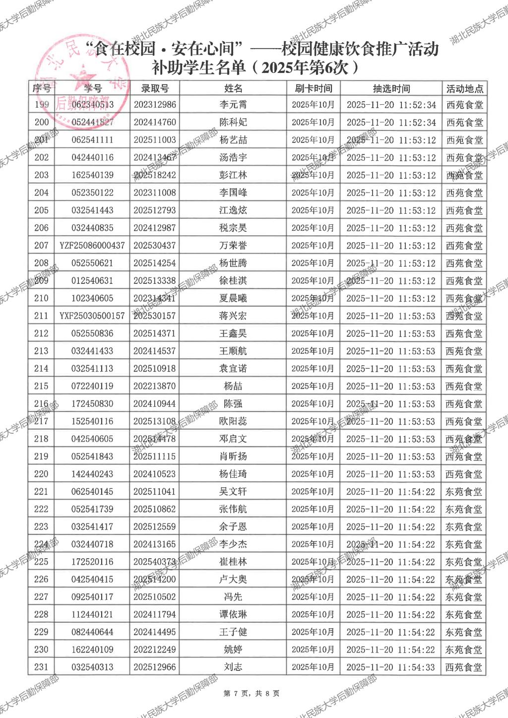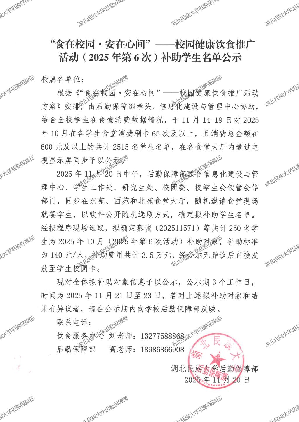 “食在校园·安在心间”——校园健康饮食推广活动(2025年第7次)补助学生名单公示