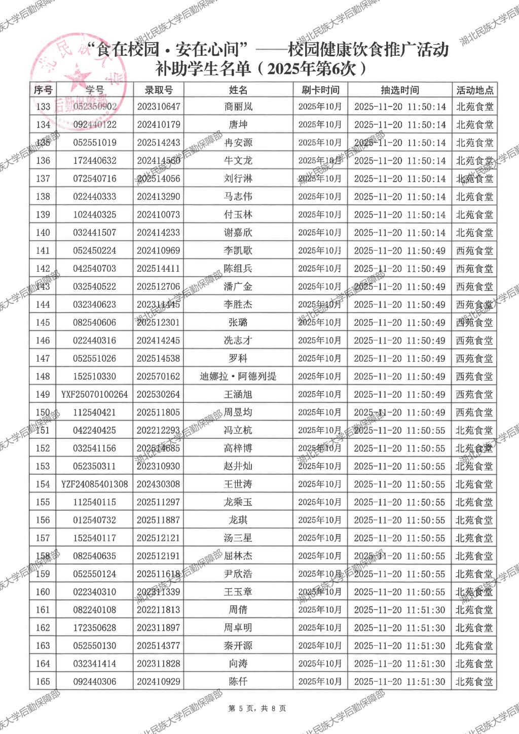 “食在校园·安在心间”——校园健康饮食推广活动(2025年第5次)补助学生名单公示