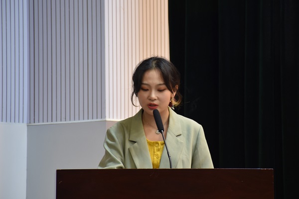 随后,19级学生代表关婷月通过自身经历向新生分享大学的经验,并建议新生学会开拓创新,打造良好的人际关系,把握当下生活。20级新生代表周瑶表达出对大学生活的憧憬,并表示会发扬校风,努力践行“博学博爱”“立人达人”。