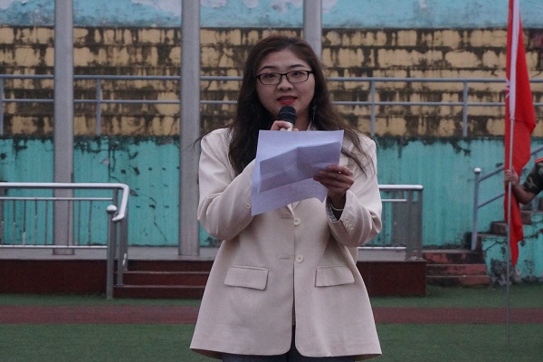 在雄壮的国歌声中,国旗护卫队完成升国旗仪式。接着,全体团员合唱团歌,重温入团誓词。随后,我院团员韩继庆围绕爱党、爱国、爱校、爱社会主义等内容,以及学习习近平总书记的重要讲话精神,以“上下同欲者胜,同舟共济者赢”为题的演讲,表现出青年团员的朝气。然后,毛召进行“如何成为一名合格的共青团员”为主题的微团课,他对青年学生寄予希望,鼓励青年学生立志报国。此外,两院的部分团员表演诗朗诵《因为有你》。