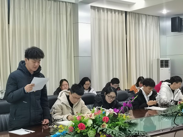 本网讯(通讯员 陈竞硕/文 王允/图)12月5日,我院学生党支部在院会议室召开接收预备党员大会。会议讨论关于谭浩然、景昊悦、柯勇杰、李丹丹、陈竞硕、胡鑫慧六名发展对象申请转为预备党员事宜。我院学生党支部书记张艺馨、组织委员覃昕、纪检委员彭召元,以及学生党员、预备党员参加会议。