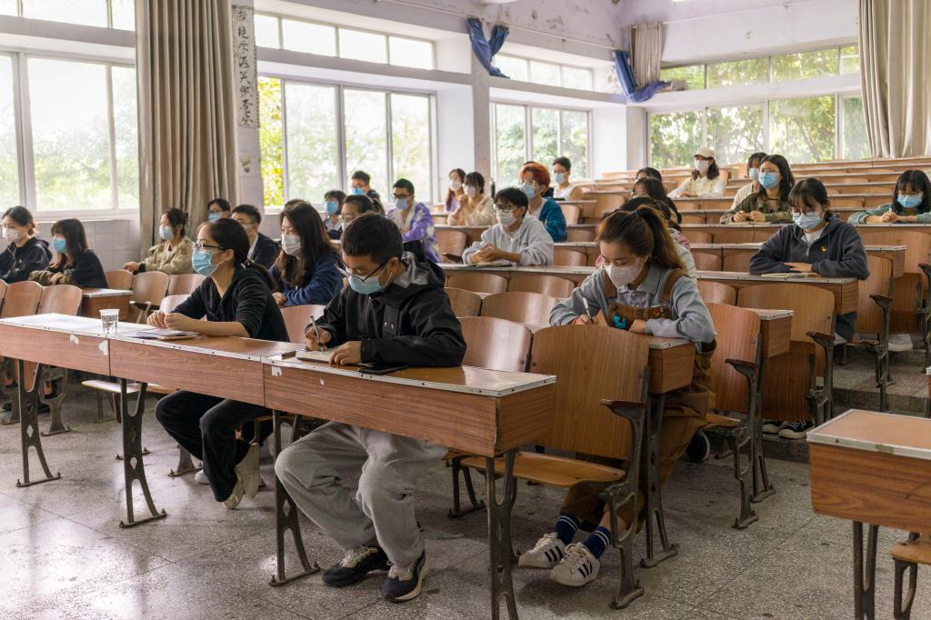 学生党支部成员及学生代表于2207教室观看二十大开幕式(许智玮/摄)