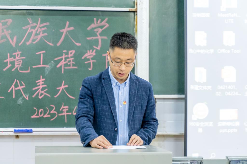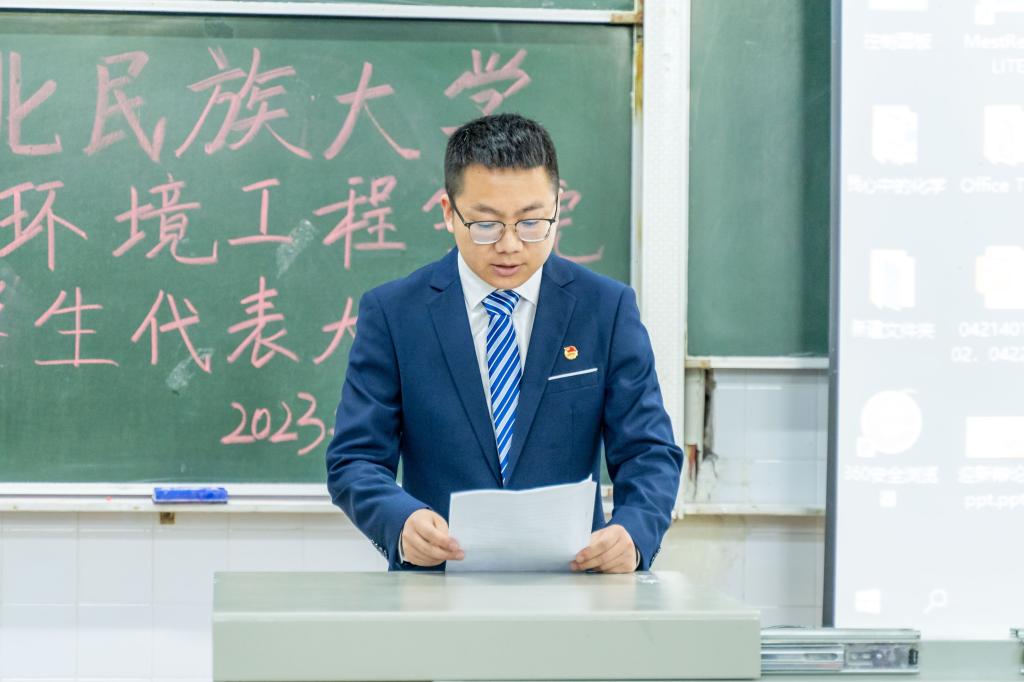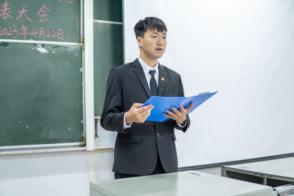 秦胜明代表我院学生会作题为《怀抱梦想脚踏实地,敢想敢为善作成,在新时代伟大征程中奋力谱写青春华章》的工作报告。他总结,过去一年中,我院学生会完善了学生会制度建设并对未来做出展望。