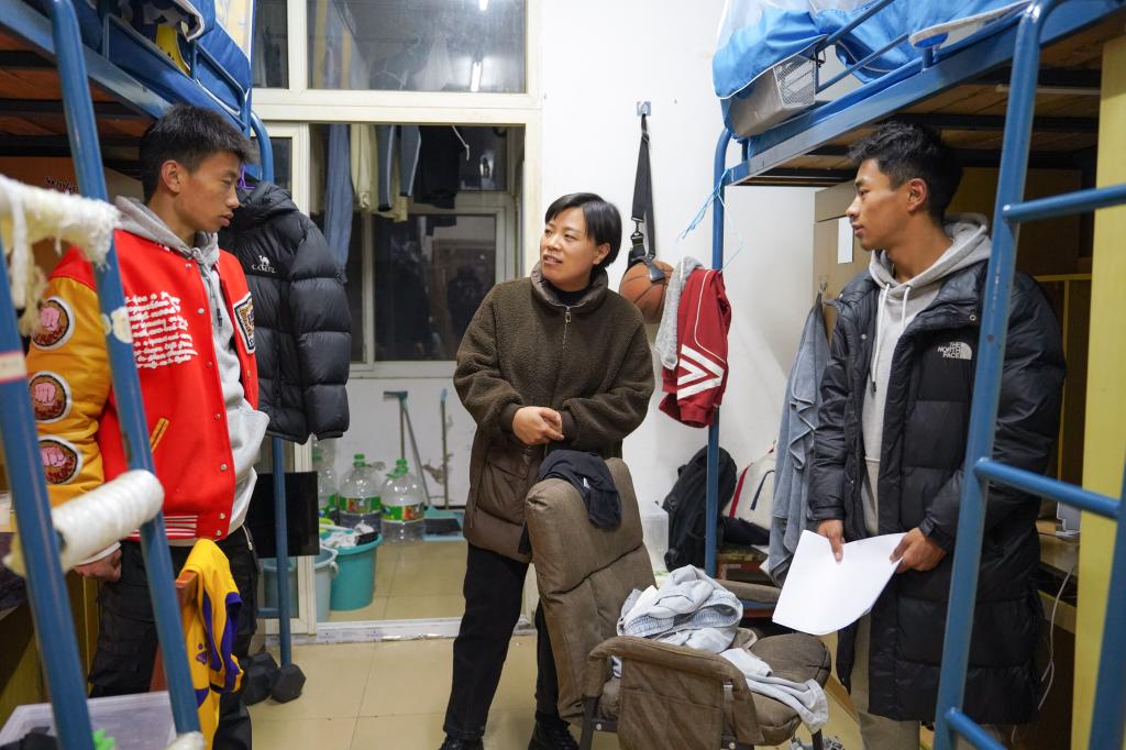 在西藏学生居住寝室,学院党总支副书记张妮艳对三名藏族学生寒假回家的行程安排表达了关切,对汉族学生曹向阳团结多民族学生、积极培育互帮互助寝室文化的事迹表示了赞许;在大四学生寝室,张妮艳详细询问了同学们的考研和就业情况,勉励同学们树立正确的就业观。在大一、大二年级学生寝室,各位辅导员均对同学们的日常学习情况及期末复习进度表示了充分的关心,在此基础上再次强调期末考试纪律要求,号召大家积极备考与诚信应考,将期末考试阶段的诚信教育贯穿于寝室走访过程中。
