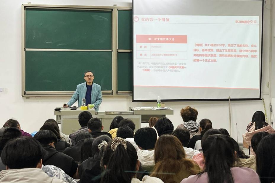 我院研究生党支部书记程新华开展第二次授课,他分别从“二十大对党章做的重要修改”“党章的概述”“党章的发展历程”“总纲”“党章的条文”对《中国共产党章程》进行全方位解读。程新华介绍党的二十大中对《中国共产党章程》所做的修改,表明党章的每一次修改,都反映出我们党对客观实际和客观规律认识上的深化。同时,他从党章的总体概述、体系、现行党章的通过时间等来加深学员们对党章的认识,并指出党章是党的总章程,集中体现党的性质、宗旨、路线、方针政策和重要主张,规定党的重要制度和体制机制,是全党必须共同遵守的根本行为规范。课程最后,程新华介绍党的组织制度和组织体系、干部、纪律、纪律检查机关、党和共产主义青年团的关系及党徽党旗等相关知识。他希望学员们对《中国共产党章程》做到学而懂、学而信、学而用,牢固树立党章意识,自觉统一自己的思想,规范自己的言行。