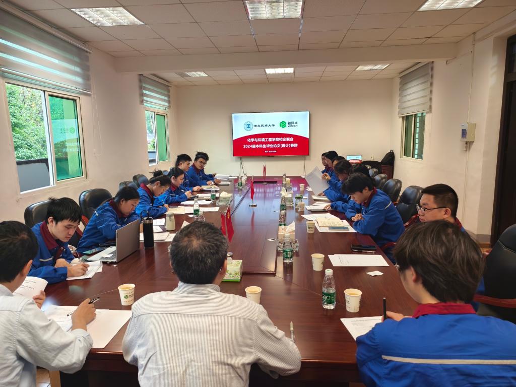 本网讯(通讯员 郭玲玲 汪蕴好 吕婷)为帮助新工科学生适应企业现代化,将理论和实践相结合,5月11日,我院与新洋丰农业科技股份有限公司共同开展“校企联合”毕业论文答辩会,我院化学工程与工艺、应用化学专业32名毕业生参加答辩。答辩组由我院吴称意、程新华,石新雨、蒲亚东、刘辉五位博士与新洋丰农业科技股份有限公司专家吴佳佳、蒋卓俊组成。