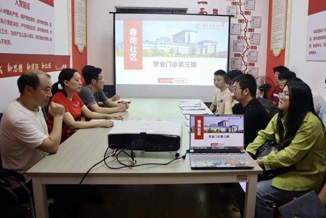 本网讯(通讯员 王奕 姚莉沙/文 瞿爱妮 胡蝶纷 戴永盈/图)5月31日,我院在达人2栋学生一站式社区“春雨社区”开展以“专业辅导及就业指导”为主题的第三期“学业门诊”帮扶活动。我院党员教师王联芝、程新华、向东山及刘辉博士作为“主诊教师”为学生答疑解惑。党总支书记、副院长桑秋章,学生科科长张艺馨出席本次活动,张艺馨担任主持人。