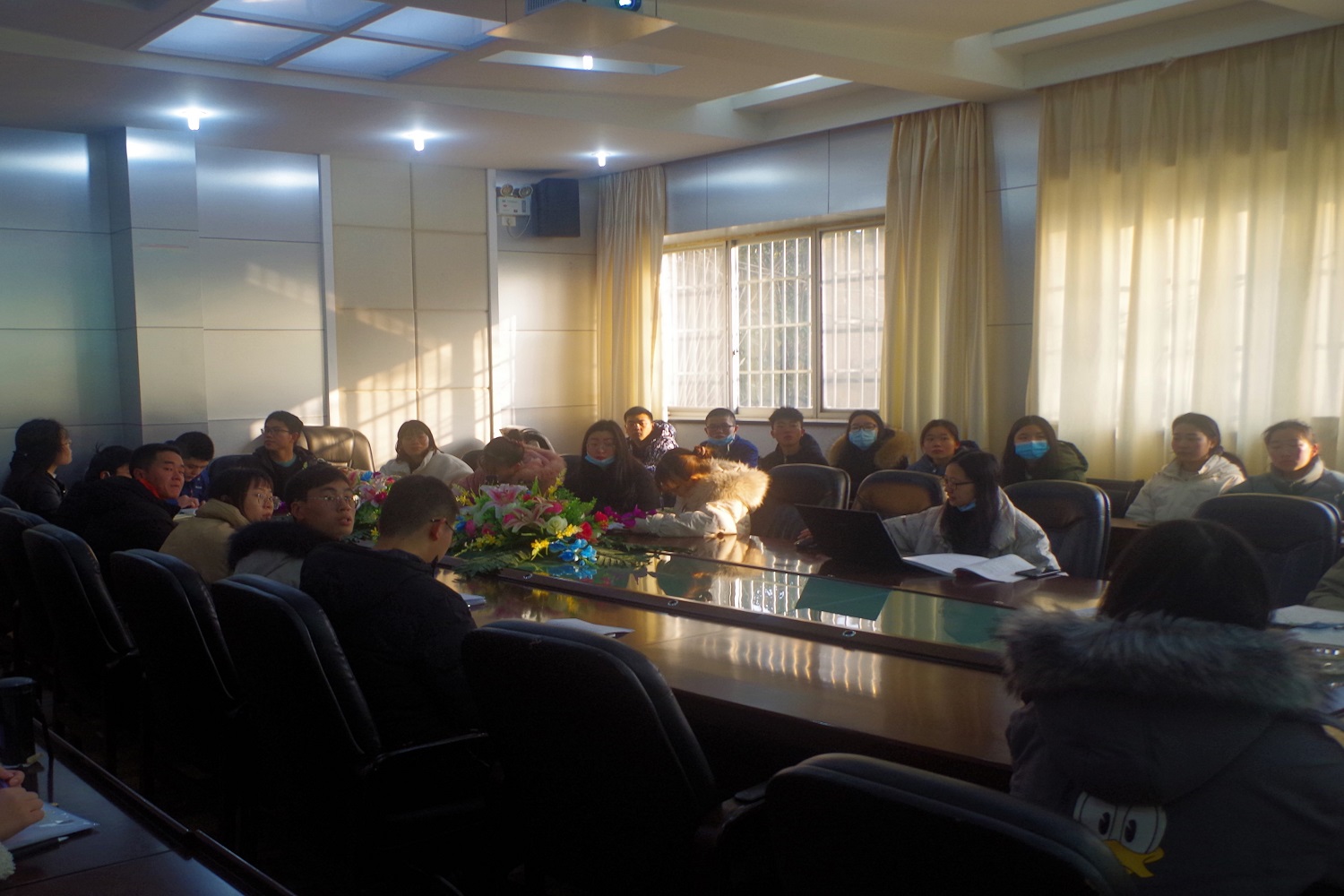 本网讯(通讯员 姚莉/文 文杰/图)12月21日,我院学生党支部在院会议室召开预备党员转正大会。会议讨论关于曹杰、董璐、周旭等9名预备党员申请转为正式党员事宜。我院学生党支部委员会成员张艺馨、覃昕、彭召元、刘恒及学生党员、预备党员参加会议。