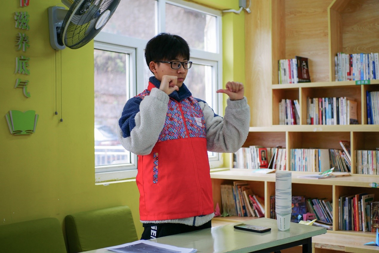 本次活动分为“一张纸的力量小实验”“学唱歌曲”“手工叠纸”三个部分。活动伊始,工作人员将小朋友按年级分为两个班级,并由志愿者们带领着做手指操。随后,志愿者让小朋友们思考将纸放置在杯子上当一架小桥如何才能承受重物,小朋友们跃跃欲试、迫不及待自己动手尝试。志愿者最终将一张纸折叠后再次放重物,并解释这是因为纸折叠过后它的受力面积变小,承压能力变大使重物牢牢不动。在课间休息时,小朋友们跟着伴奏一起律动,吟唱歌曲,露出发自内心的笑容,成功达到寓教于乐目的。紧接着,志愿者对小朋友们一一进行教学叠千纸鹤和玫瑰花。在这个过程中,小朋友们专心致志,跟着志愿者一步一步叠着手中的彩纸,耐心的完成。志愿者鼓励小朋友们回家后将课堂上学习的内容与父母分享,并将自己的叠纸送给家人。最后,由志愿者带领小朋友们拍照留念。本次活动在小朋友们的欢笑声中顺利结束。