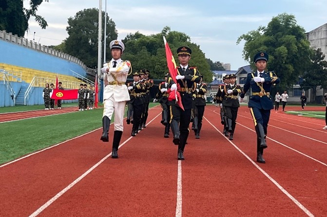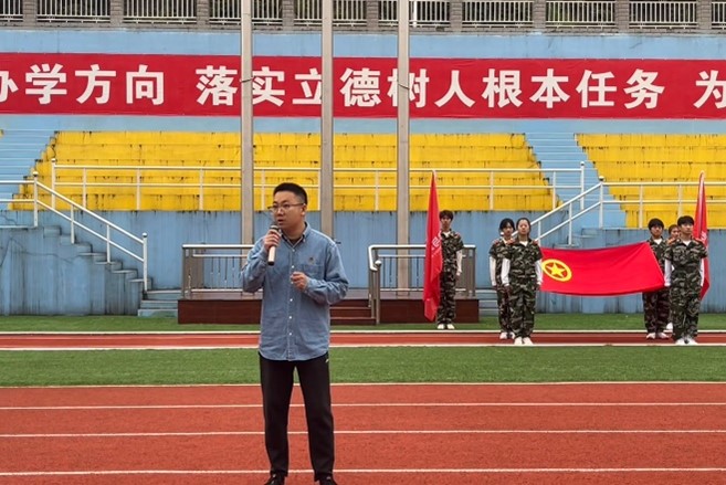 国歌声起,校国旗护卫队完成升国旗仪式。学生代表进行出团旗仪式,全体团员合唱国歌并重温入团誓词。活动进入第五项,我院孟雅静与马克思主义学院张弘、向自力三位学生代表为大家讲述红色故事、分享大学经历。接着,由彭召元老师讲授微团课,他从鸦片战争出发,讲述了中国艰难的奋斗史与发展史,并向两院学子寄予“成为习总书记所说的有理想,敢担当,能吃苦,肯奋斗的新时代好青年”的希冀。最后,桑秋章书记进行总结发言,他鼓励两院学子“爱国”“爱家”“爱校”“爱自己”,并以“以志为先,以新为径,以苦为念”作引,呼吁同学们立志民族复兴,不负时代与人民,在青春赛道上跑出风采。