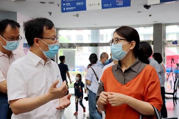 焦雅辉一行现场察看了医院门诊、预检分诊、专家远程会诊等工作。
