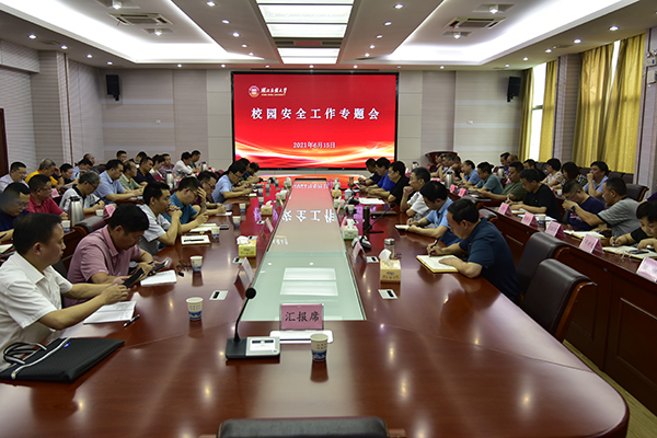 本网讯 6月15日,bat365官网在行政楼三号会议室召开校园安全工作专题会,党委书记吴建清,党委副书记、校长顿祖义,党委副书记、副校长汪兴平,党委常委、副校长邓磊,党委常委、总会计师余来,党委常委田景福出席会议,各二级单位党政负责人参加会议。