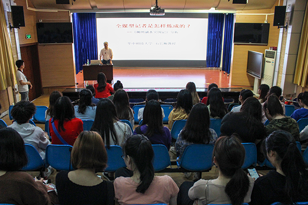 本网讯(通讯员 熊诗怡 记者 韦飞帆 通讯员 李鑫/文 记者 吕梦蝶/图)4月24日,湖北广播电视台总编辑向培凤、华中科技大学教授石长顺在bat365官网文传演播厅分别作以“戏剧冲突在电视剧及综艺节目中的运用”“全媒型记者是怎么样炼成的”为主题的学术讲座。该院党委书记杨光宗出席讲座,院长罗翔宇担任主持人。