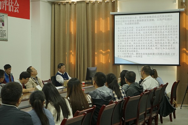周大鸣以“从道路到民族走廊的演变”为引,从“南岭走廊苗瑶畲族的族群发展”“白马藏族的族群认同”“宁夏的多族群交错分布”3个方面展开。由小及大,通过向在场师生详细讲解苗族、瑶族和畲族及入岭通道族群的大致分布区域、湖南江永“四大民谣”的形成、江永县在南岭走廊中的重要位置等,分析南岭走廊的族群发展。随后,他以白马藏族的归属为例分析探讨族群认同的问题。他表示,白马藏族的族生活在藏彝走廊的最东端,在建筑风格、饮食习惯等方面深受汉藏文化圈影响,他认为,白马藏族族群认同的边界是建构、跨越与再生产的过程,并对族群边界的层次与纹理进行内部分层。